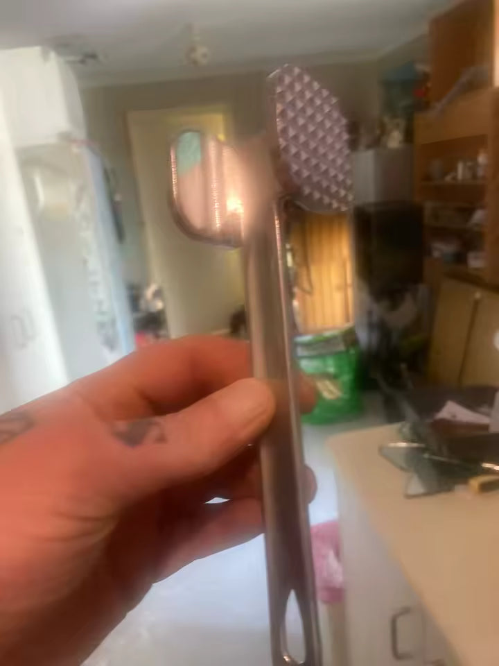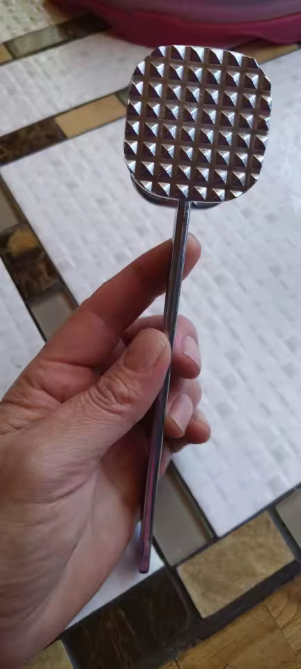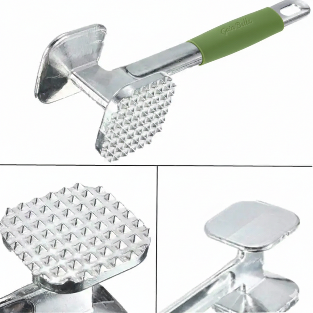 A ferramenta é elaborada em liga de zinco de alta resistência, garantindo que não é apenas durável, mas também fornece o peso necessário para uma amaciagem eficiente. Esta construção robusta garante desempenho durável na sua cozinha, tornando-a uma ferramenta essencial para qualquer entusiasta de culinária.